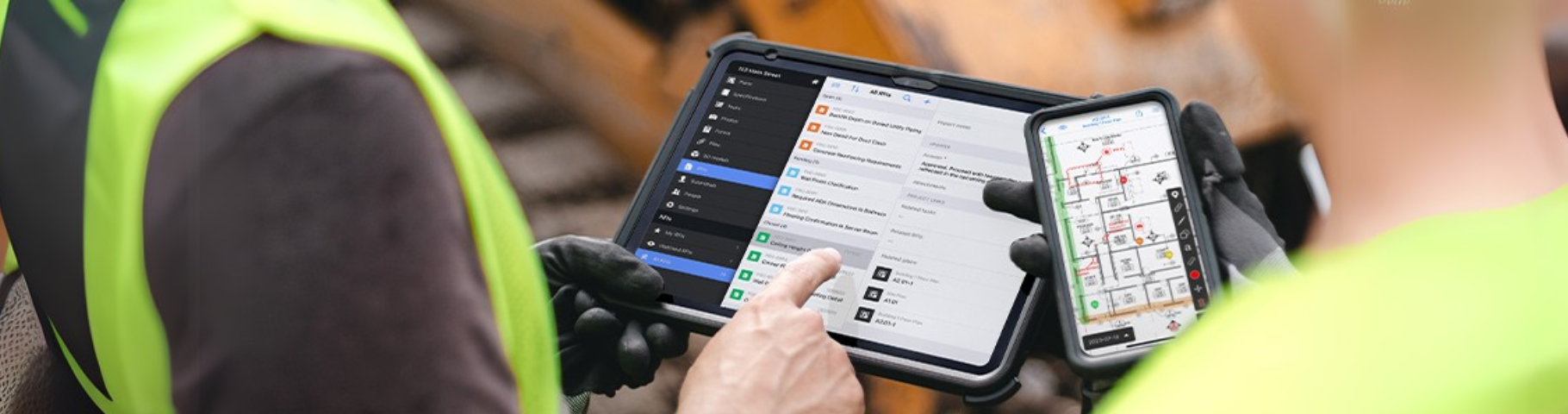 Für den Einsatz vor Ort konzipiert: Eine intuitive mobile Benutzeroberfläche, die an die Gegebenheiten auf der Baustelle angepasst ist, auch wenn keine Verbindung besteht.