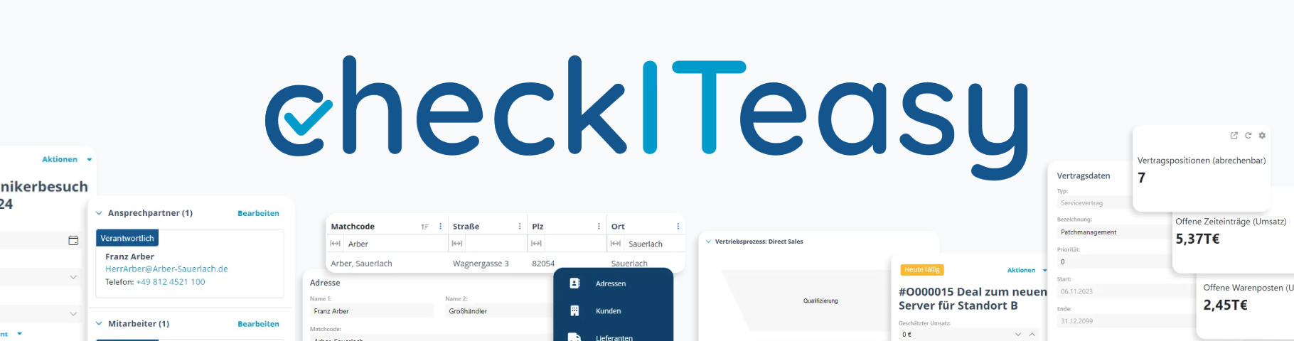 checkITeasy ist eine spezialisierte CRM-Erweiterung und Ticketing-Lösung, die nahtlos mit Sage 100 integriert wird. Mit einer bidirektionalen Schnittstelle sorgt checkITeasy dafür, dass Ihre Vertriebs-, Service- und Vertragsprozesse stets synchron sind. Vertrieb und Service werden in einer Plattform vereint – für effizientere Arbeitsabläufe und eine konsistente Kundenerfahrung.